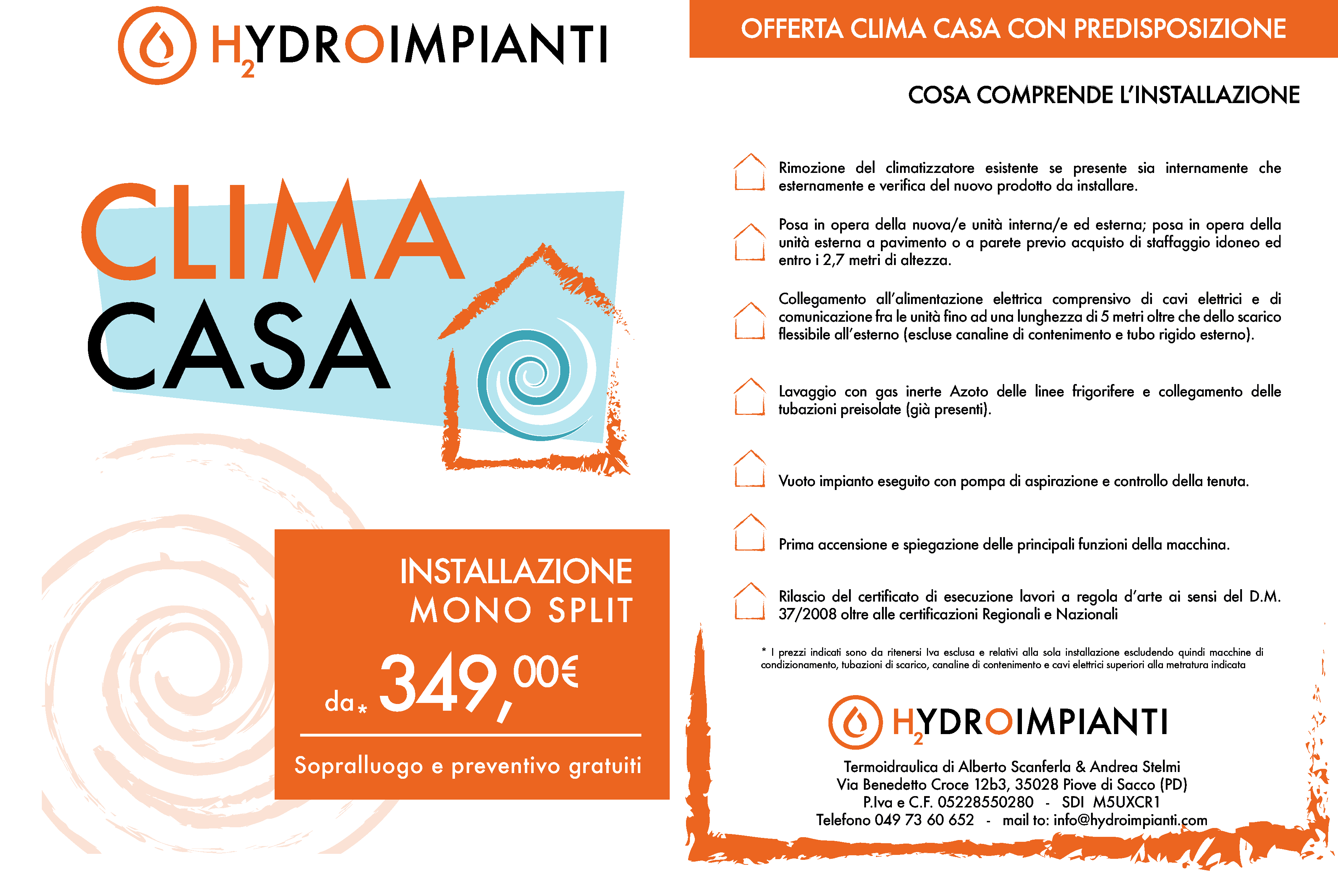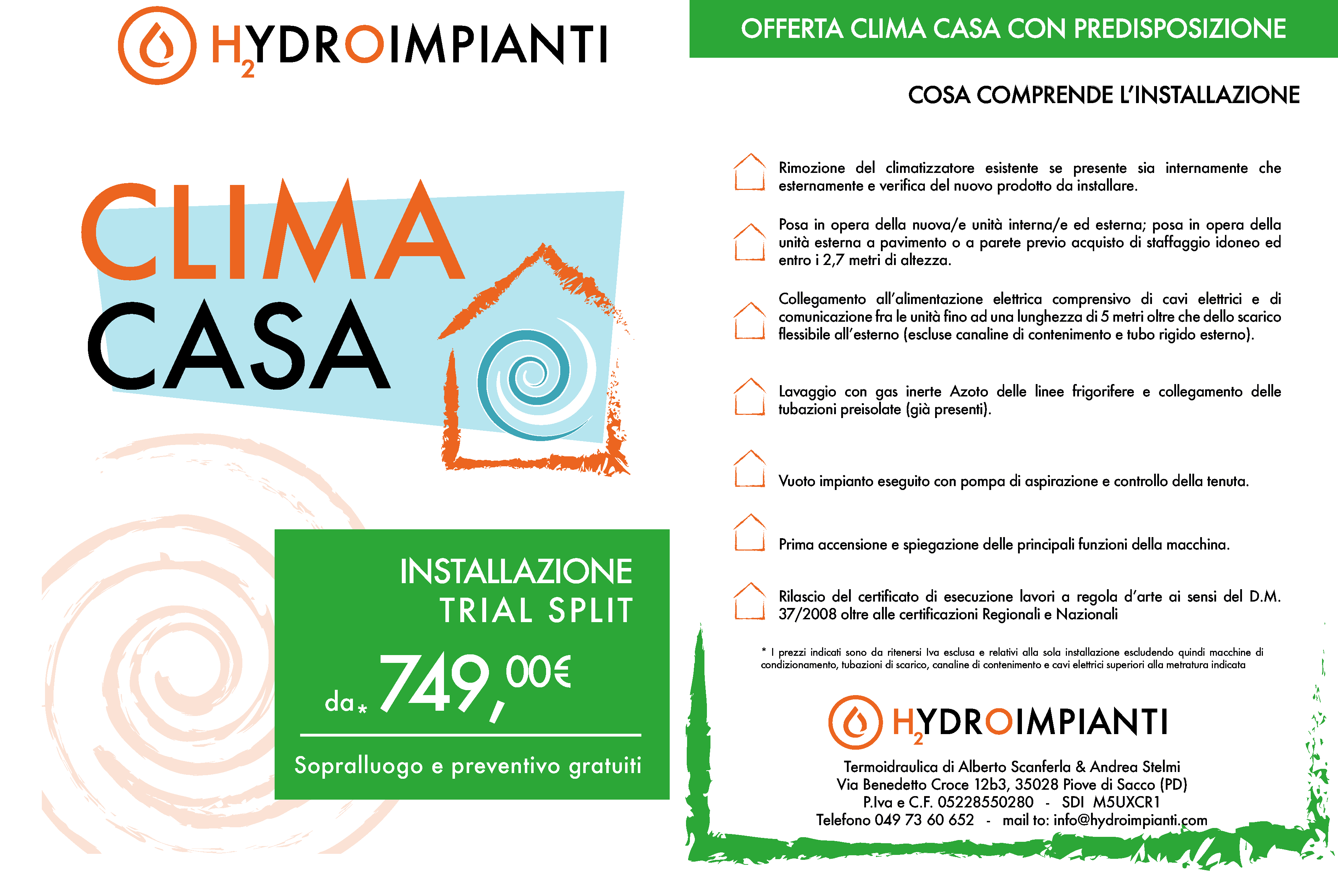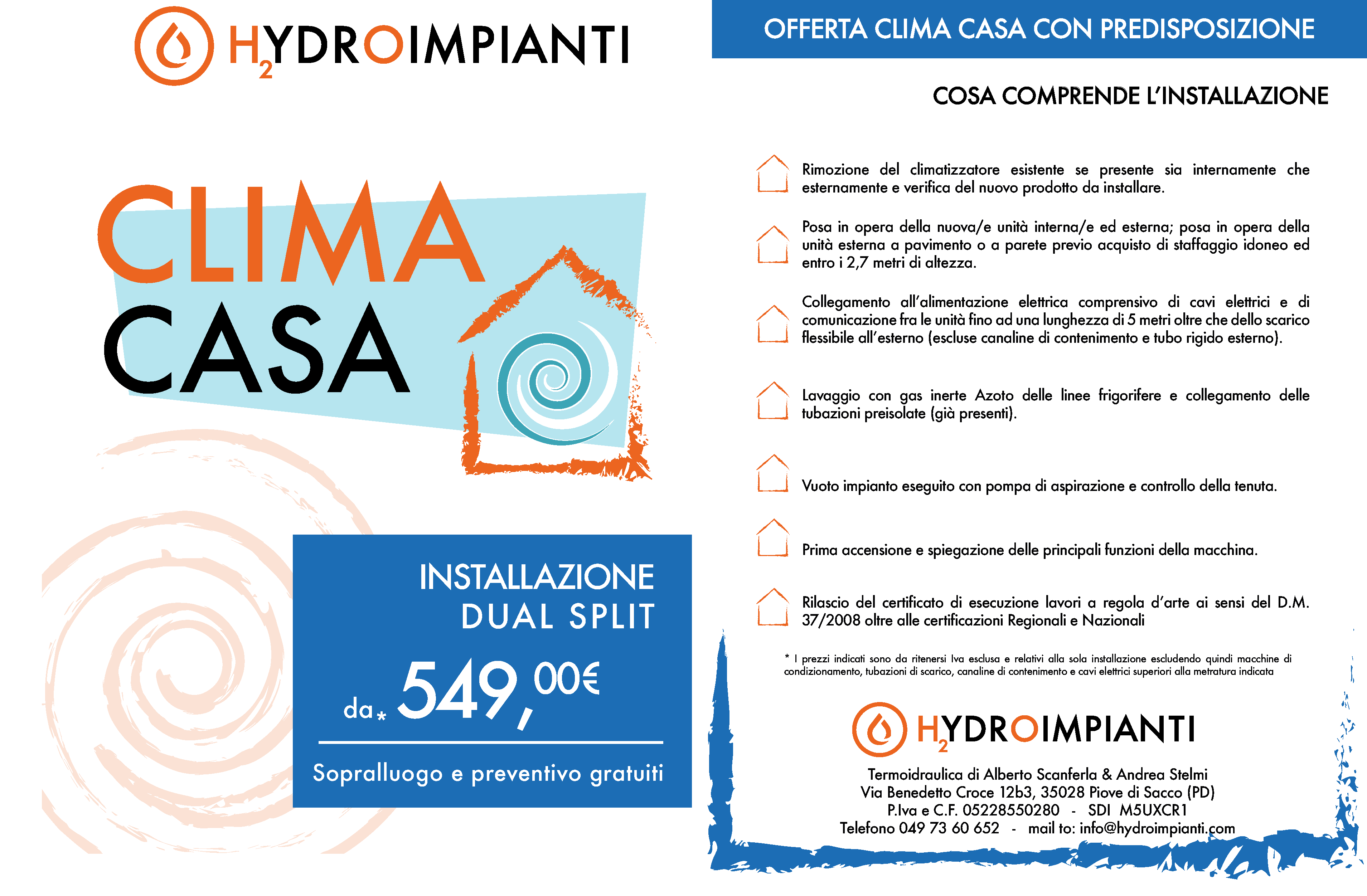 Interveniamo in tutto il territorio Piovese e nelle provincie di Padova e Venezia; corrediamo la fornitura della macchina con le staffe di supporto ed i cavi di collegamento elettrici assieme ai libretti regionali CIRCE e nazionale F-Gas.